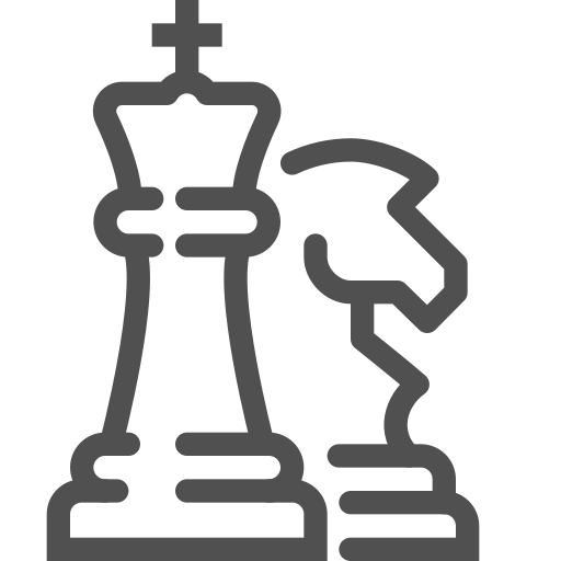 outline simple icon: board game, chess, king, knight, strategy