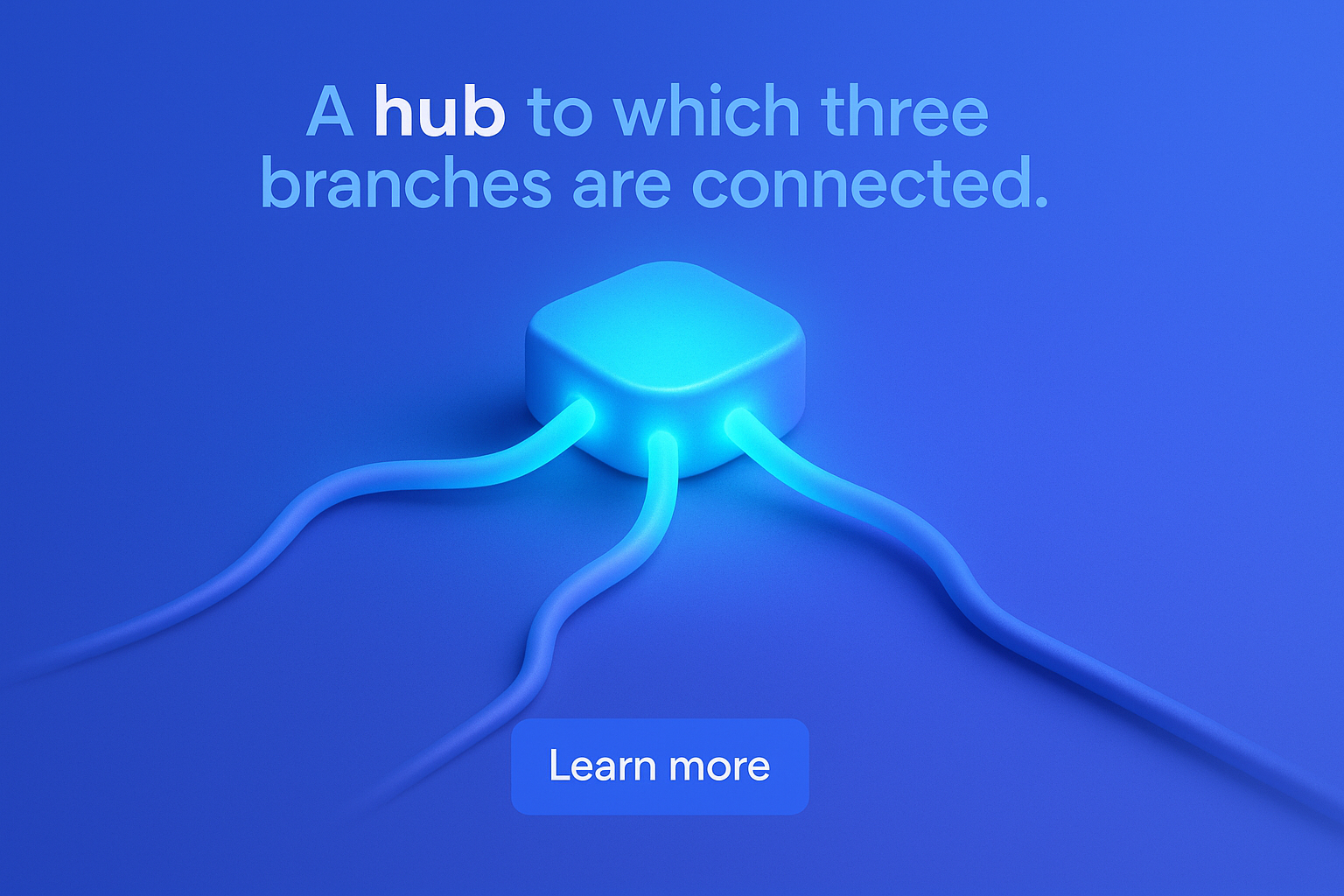 Glowing Hub with Three Connected Branches in a Blue Atmosphere