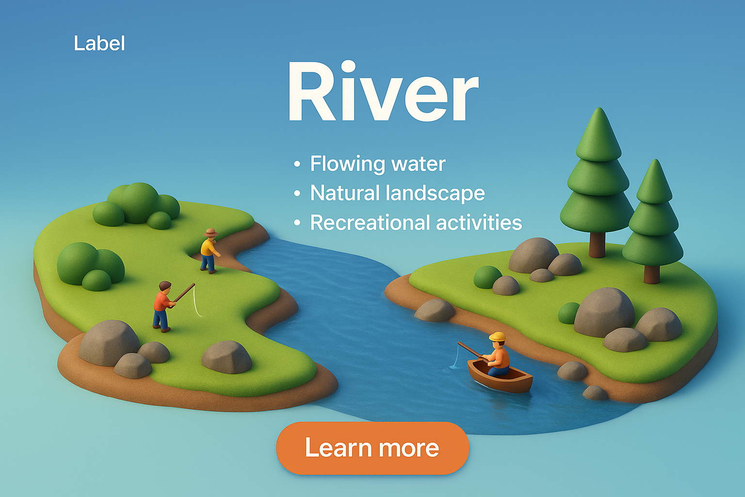 /Collection: /by davooda/Type: PNG/A detailed 3D illustration of a river surrounded by greenery, featuring small figures engaged in recreational activities. The vibrant colors and layered composition enhance the visual appeal.