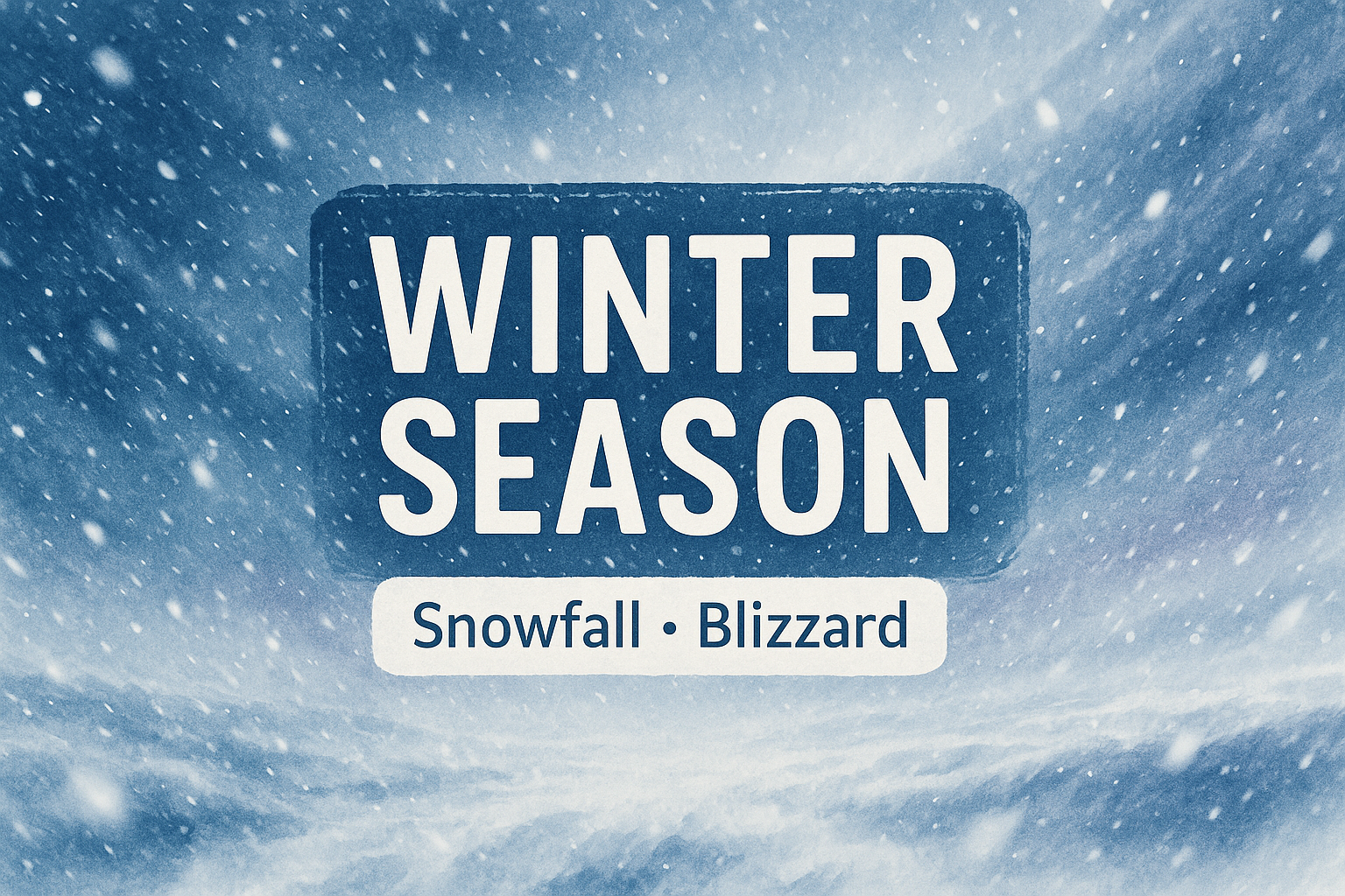 Promotional graphic representing the winter season with a snowy backdrop and bold typography, ideal for seasonal marketing or social media posts.