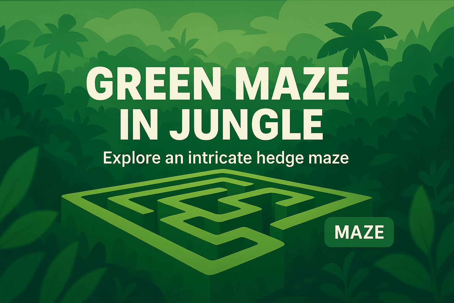 A vibrant graphic featuring a green maze set within a lush jungle backdrop, ideal for adventure-themed events or promotional materials.