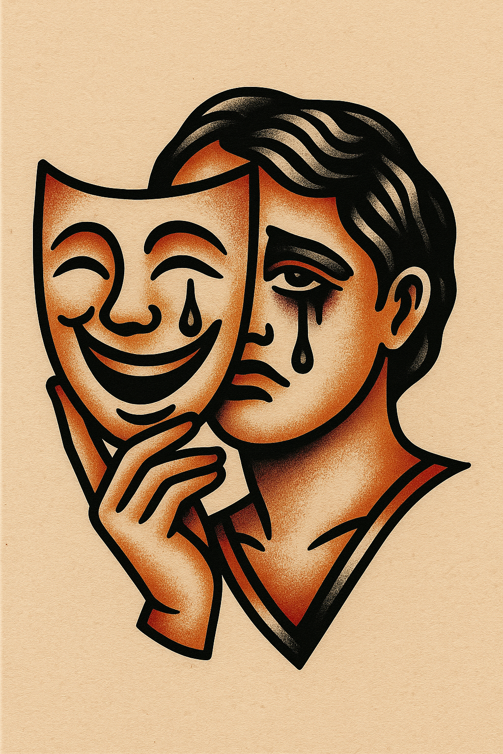 Mask of Happiness with Tears: A Classic Tattoo Design