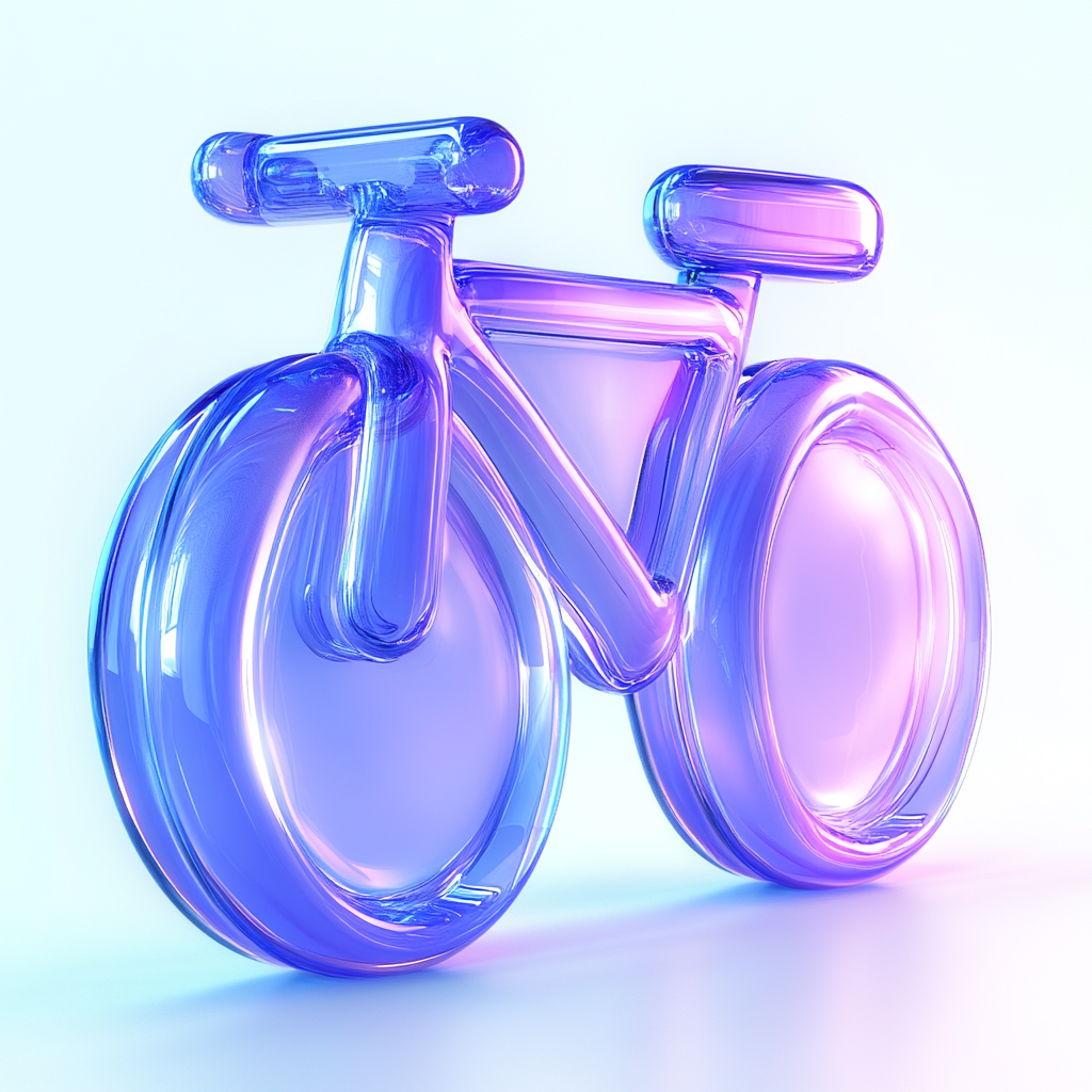 A modern 3D rendering of a bicycle in translucent gradient colors, showcasing a sleek, minimalistic design ideal for tech or fitness themes.