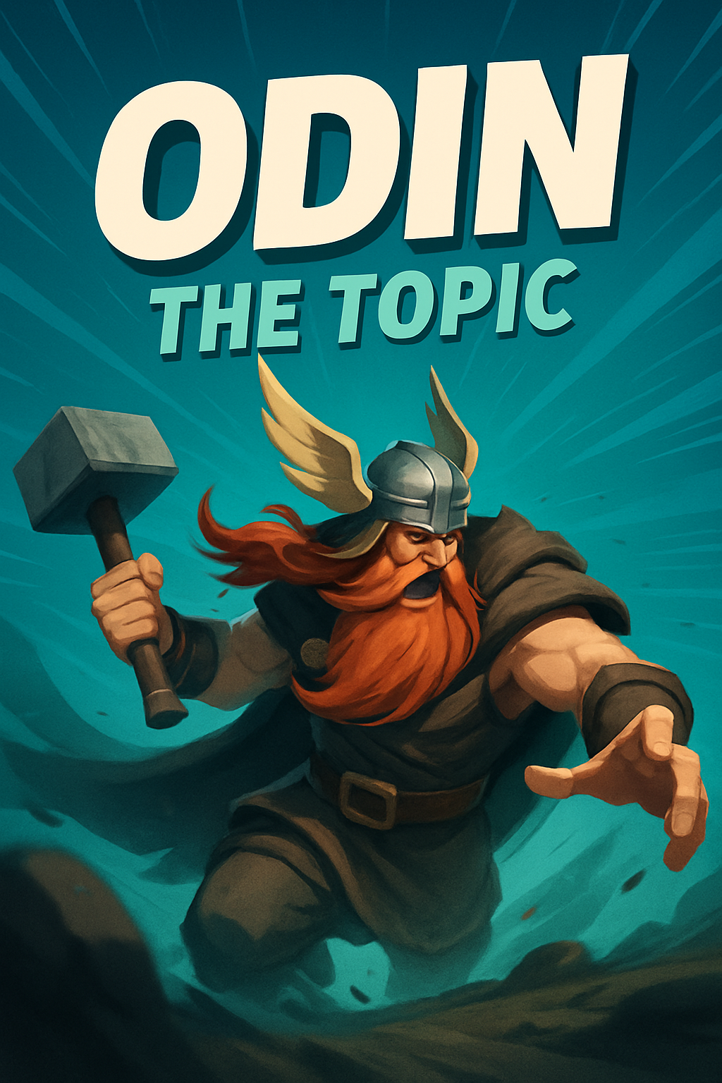 /Collection: /by davooda/Type: PNG/A vibrant illustration featuring Odin, characterized by his iconic helmet and hammer. This graphic is suitable for fantasy-themed content aimed at audiences interested in mythology.
