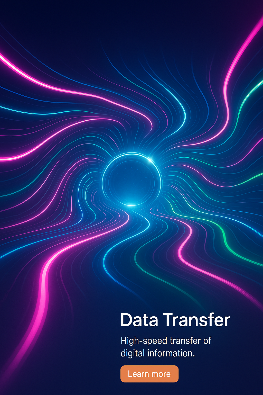 /Collection: /by davooda/Type: PNG/An abstract futuristic portal illustration featuring glowing neon wave lines in pink, blue, and green. The design emphasizes a high-speed data transfer theme, with a zoomed-out perspective.