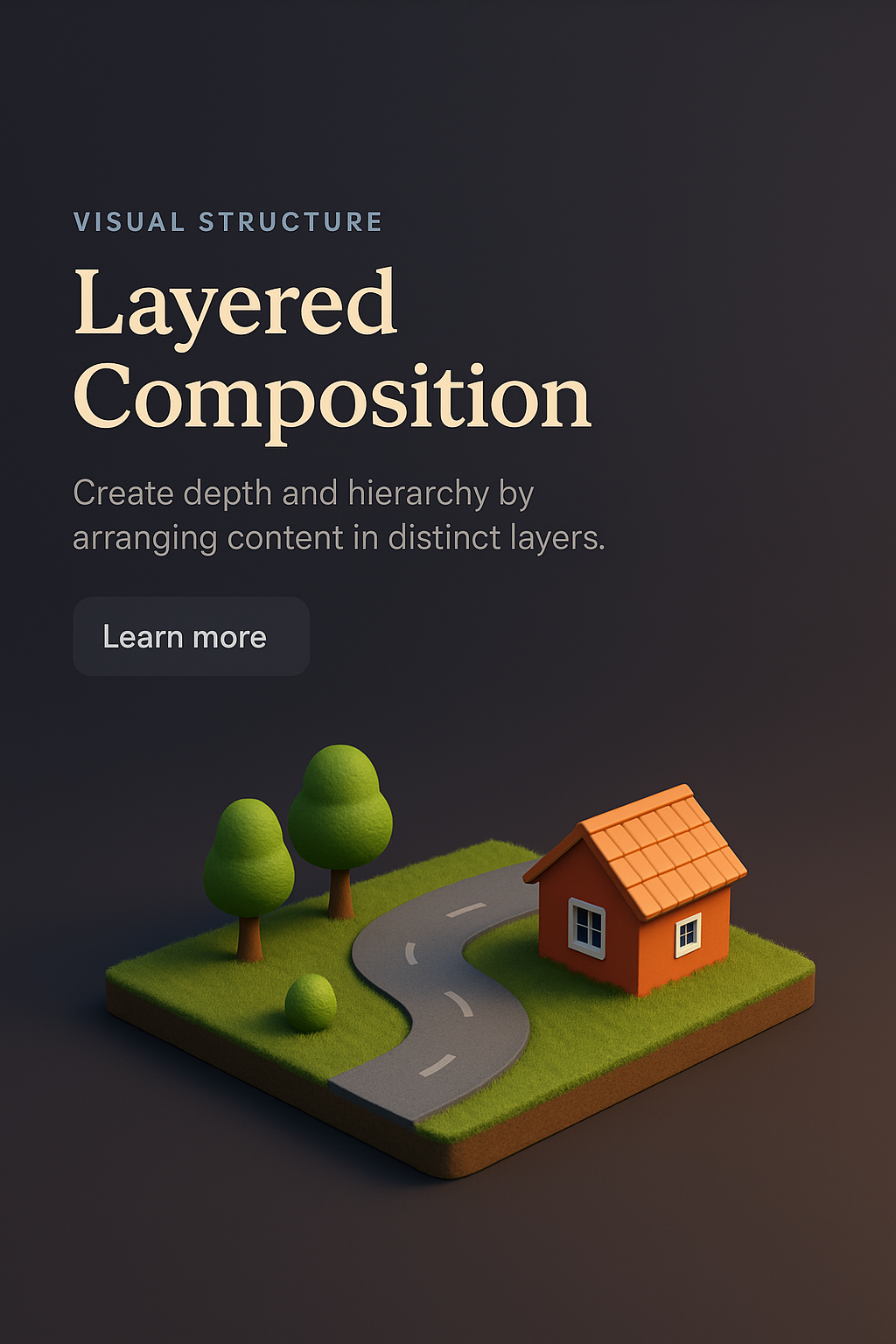 /Collection: /by davooda/Type: PNG/A visually appealing 3D scene depicting a small house, trees, and a winding road on a gradient background. The design emphasizes depth and clarity with minimalistic elements.