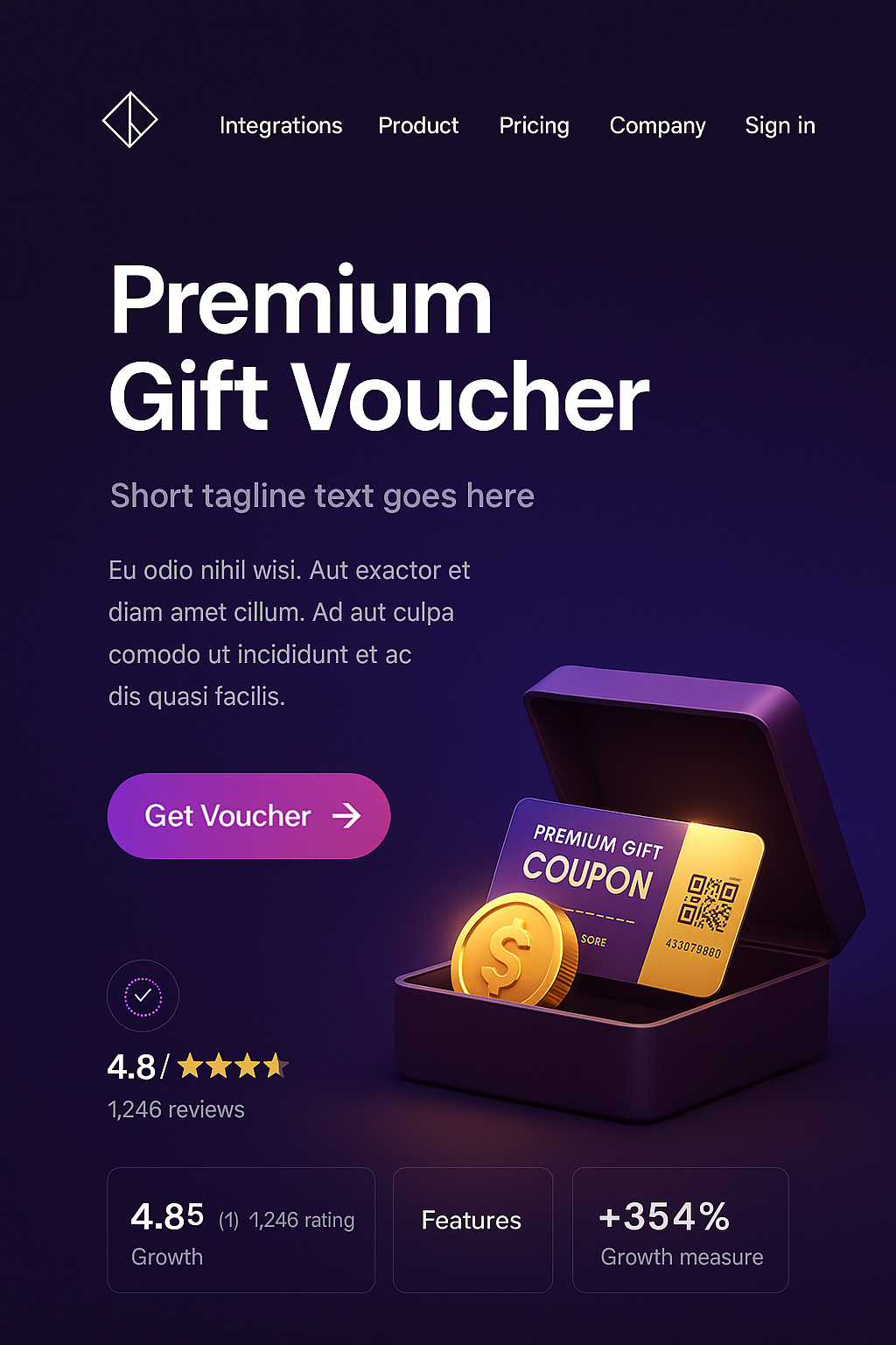 A sleek landing page design featuring a premium gift voucher inside a luxury gift box. The vibrant gradient background enhances depth, with small sans-serif typography for a modern feel.