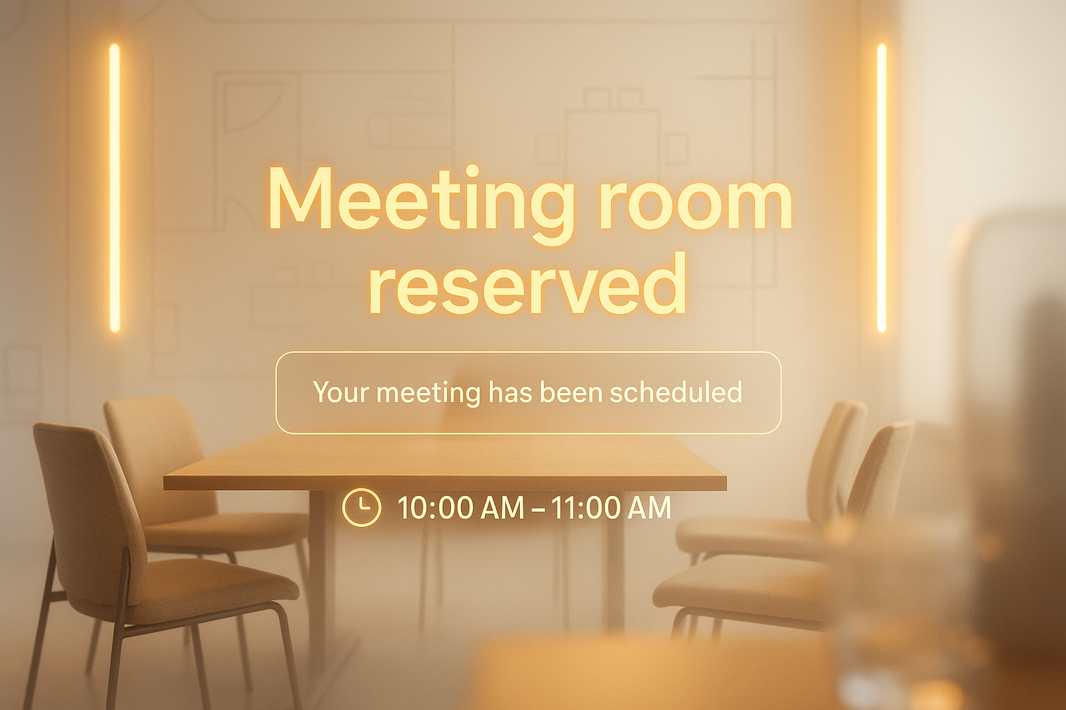 /Collection: /by davooda/Type: PNG/A modern and inviting digital announcement for a reserved meeting room, featuring soft lighting and a minimalist design. Ideal for corporate settings and office communications.