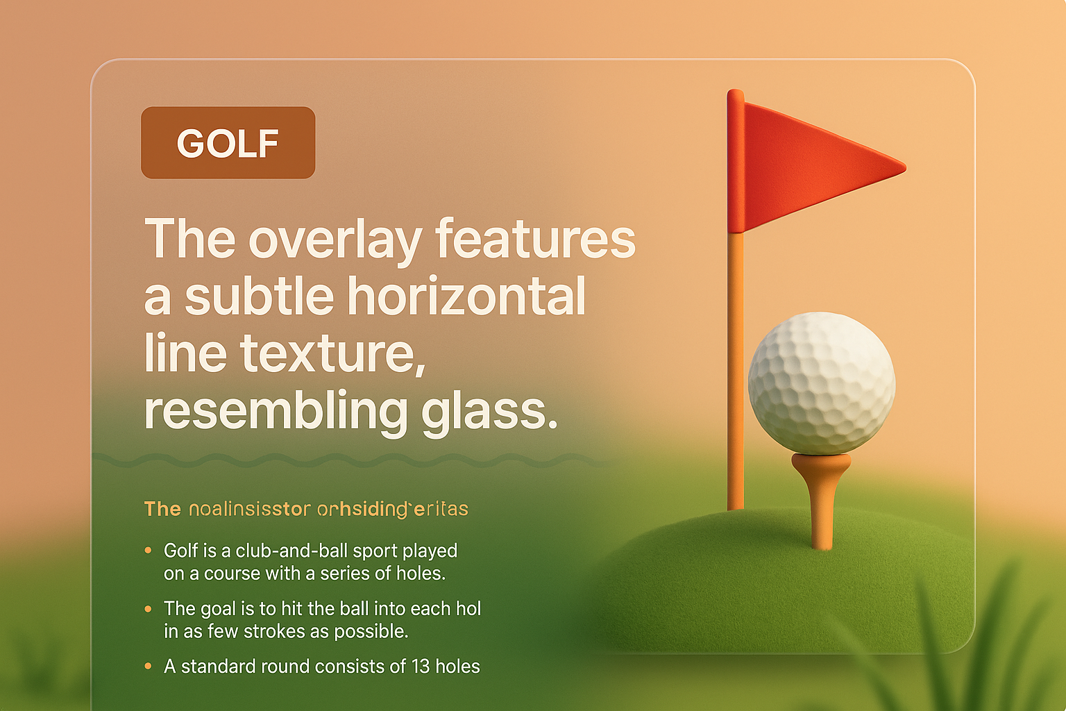 A vibrant 3D illustration depicting a golf scene featuring a flag, golf ball, and textured overlay. The design integrates text describing the sport, enhancing the visual appeal.
