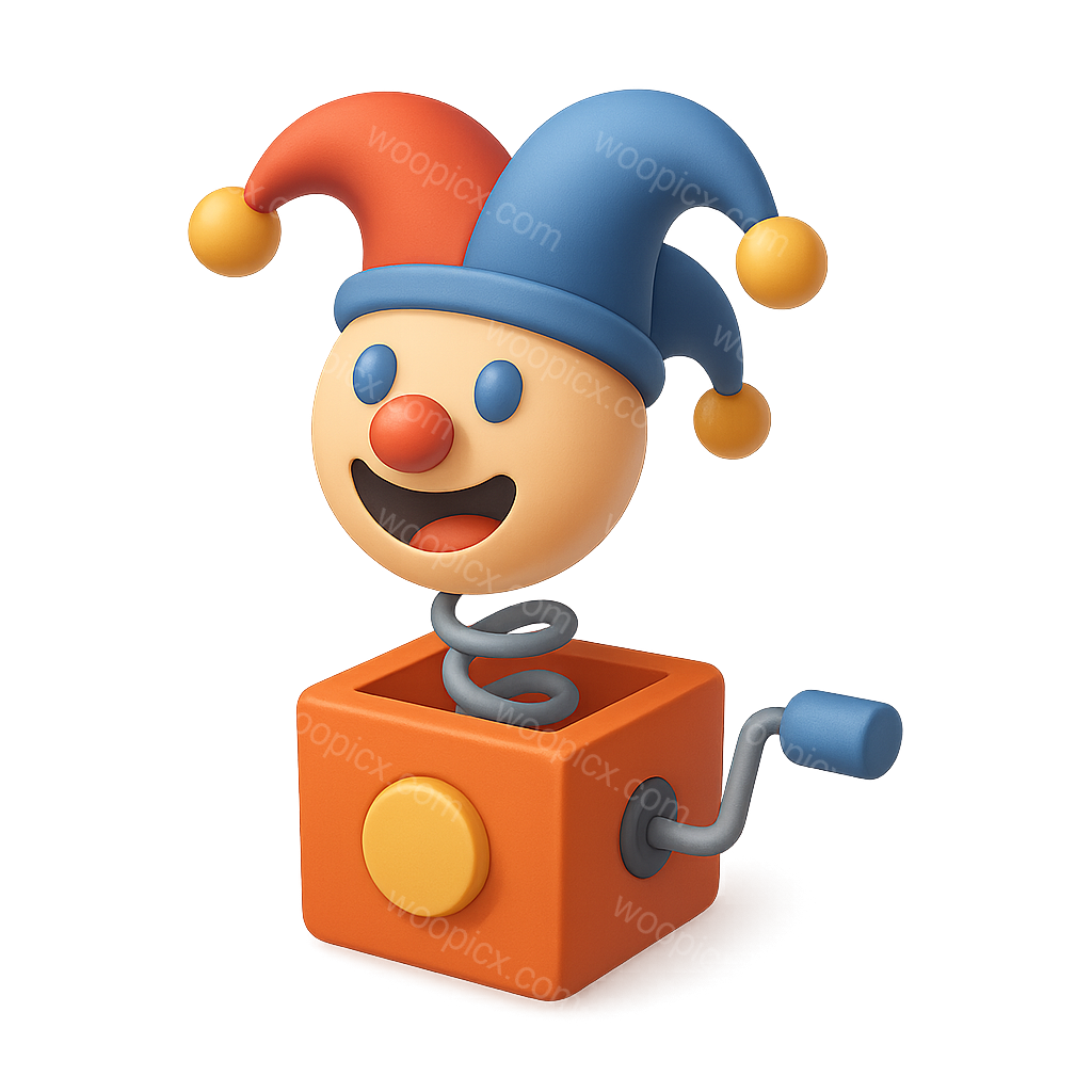 A whimsical 3D icon featuring a clown with a jester hat, positioned atop a jack-in-the-box. The design showcases vibrant colors and a playful expression, enhancing its April Fool theme.