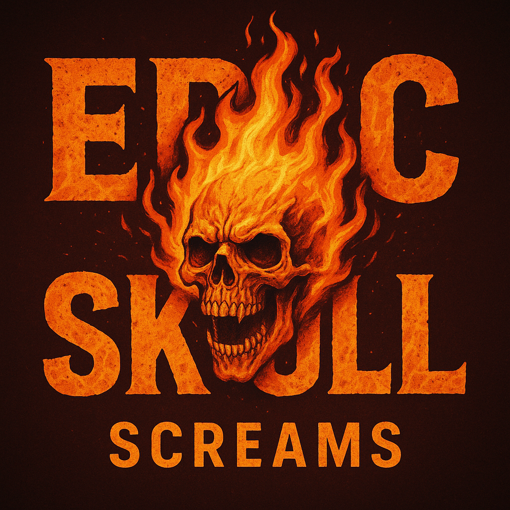 A striking graphic featuring a skull engulfed in flames with bold typography, ideal for promoting events, merchandise, or Halloween-themed content.