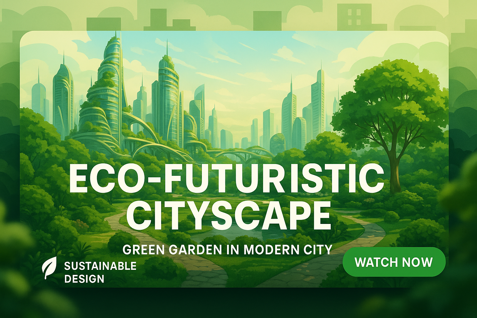 /Collection: /by davooda/Type: PNG/Vibrant digital illustration of an eco-futuristic cityscape, showcasing lush greenery and modern architectural designs, ideal for promoting sustainable living concepts.