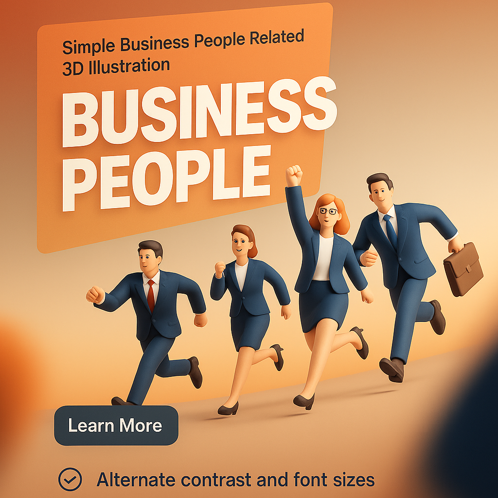 /Collection: /by davooda/Type: PNG/Dynamic 3D illustration featuring a group of business people running, showcasing a modern and professional design, ideal for corporate or motivational content.