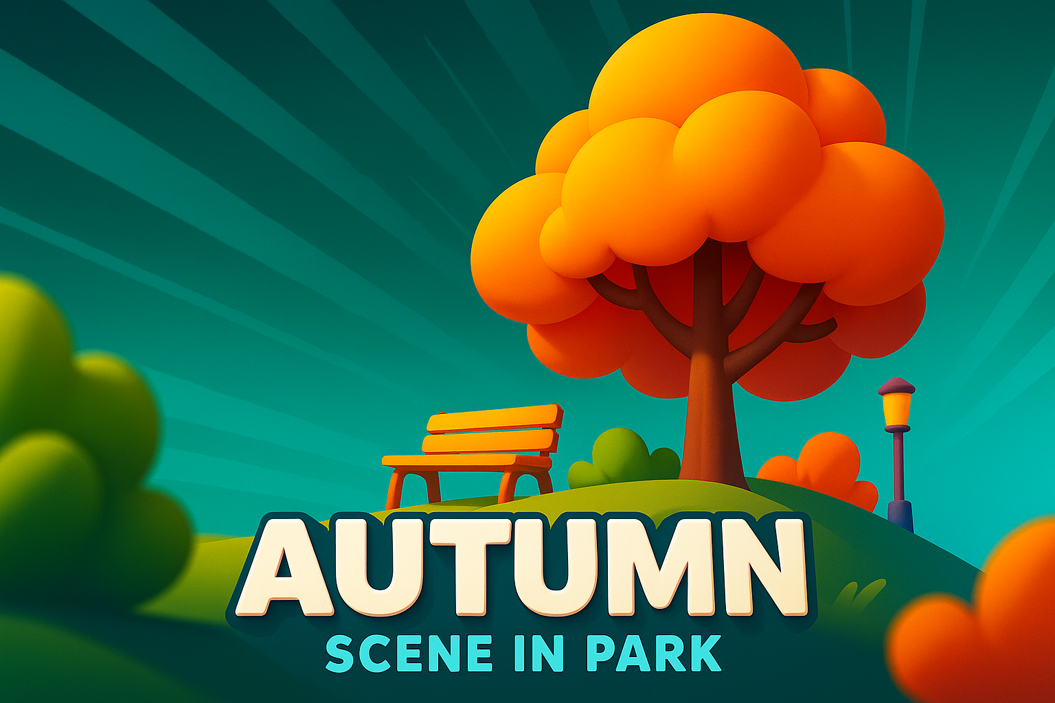 Autumn Foliage Illustration in a Park with Vibrant Colors