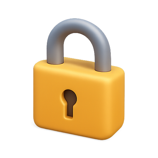A vibrant 3D illustration of a yellow padlock with a silver shackle, symbolizing security and protection. Ideal for digital security themes and tech-related content.