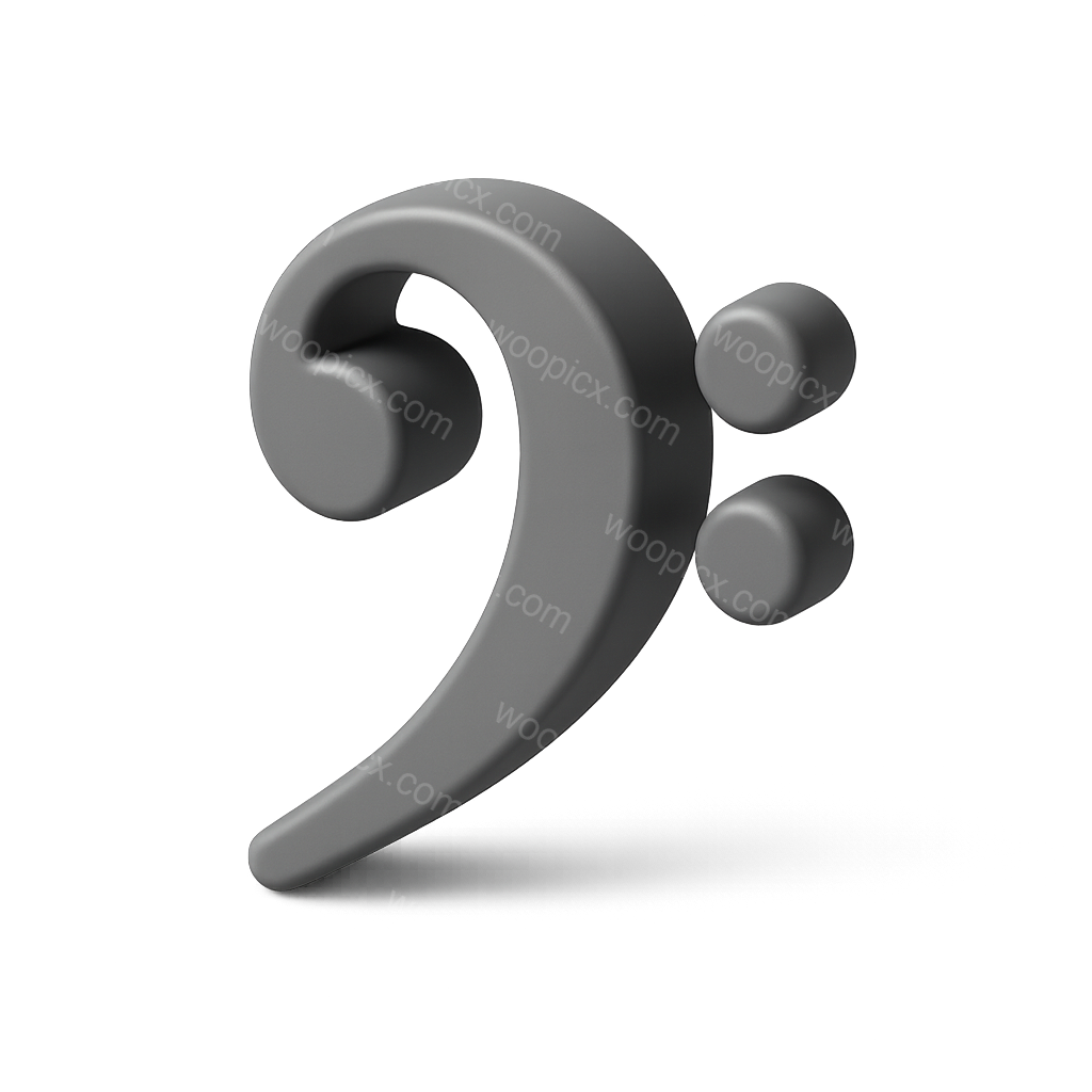 A sleek and modern 3D representation of a bass clef icon, showcasing a three-quarter view with a smooth, volumetric design against a subtle gradient background.