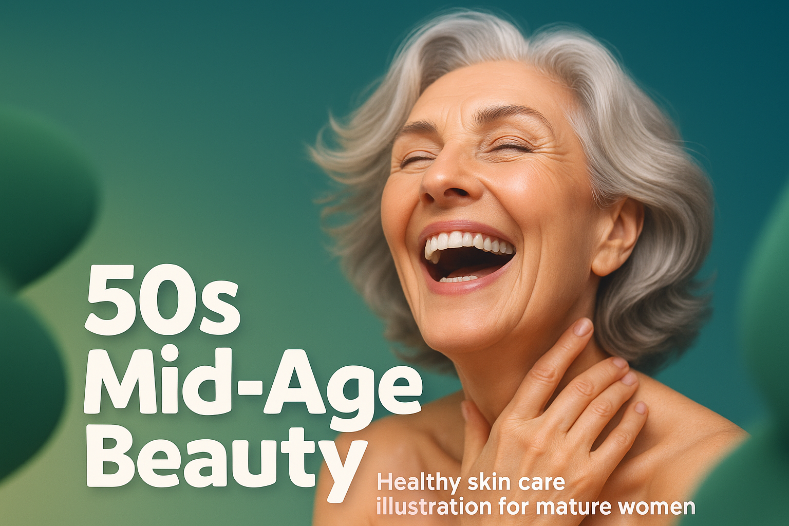 Elegant Mid-Aged Woman Promoting Skincare Beauty