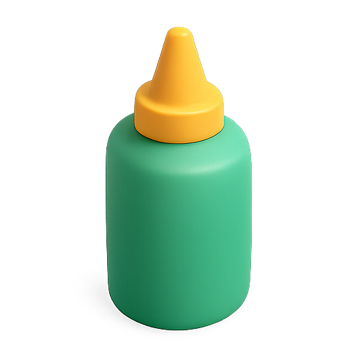 /Collection: /by davooda/Type: PNG/A stylized 3D representation of a green condiment bottle with a yellow cap, ideal for product mockups or food-related graphics. The design features a smooth texture and modern aesthetic.