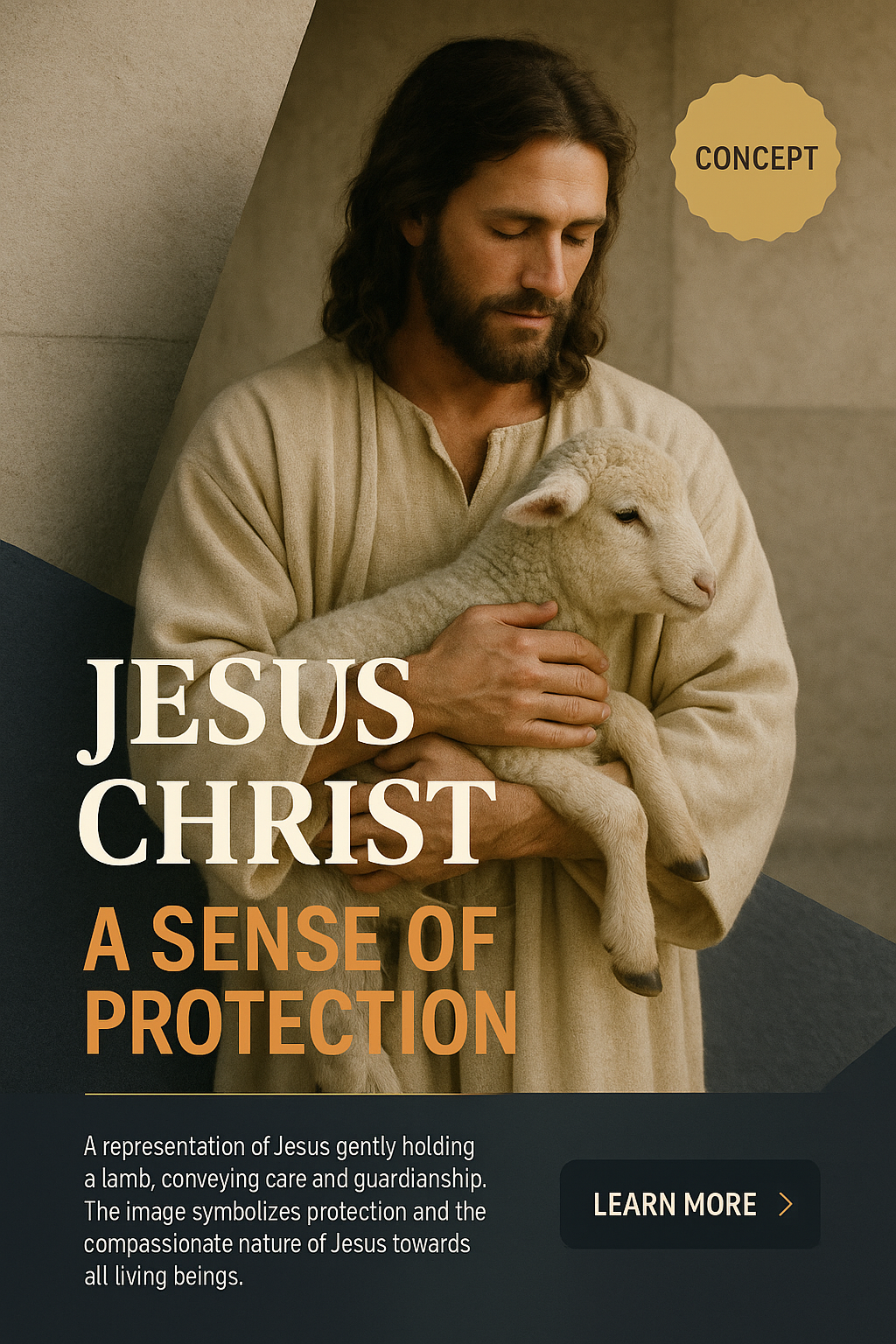 /Collection: /by davooda/Type: PNG/This image depicts Jesus Christ gently holding a lamb, symbolizing protection and care. The composition features a soft color palette and layered design elements for a realistic feel.