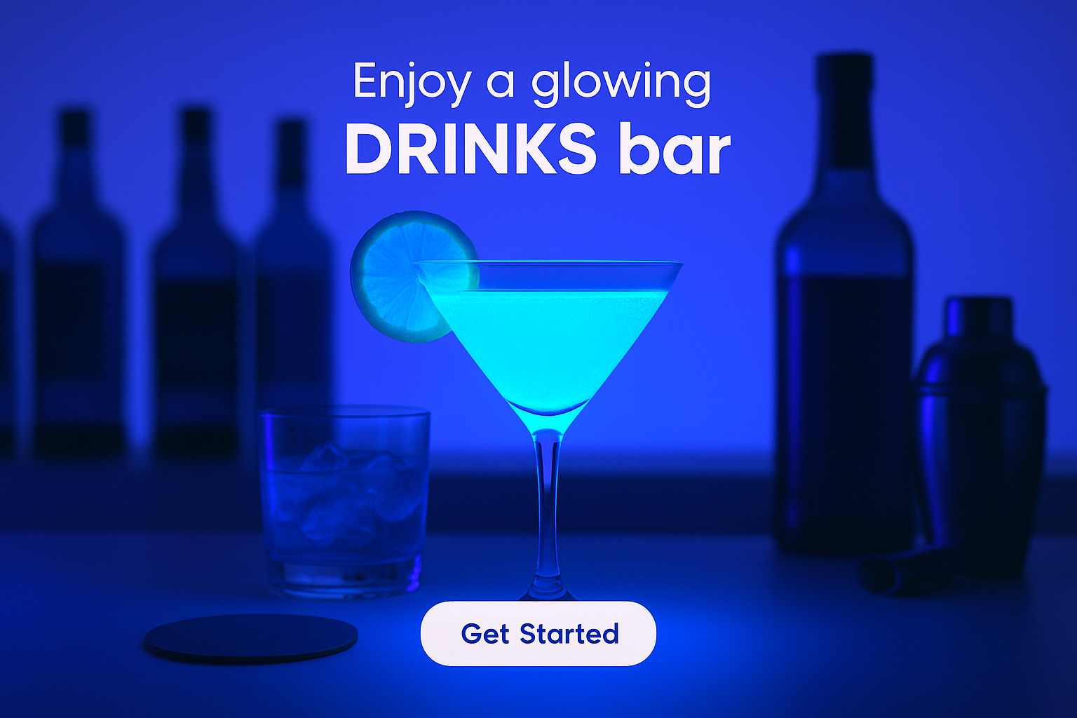 Fluorescent Bar Glow with Vibrant Drinks Display