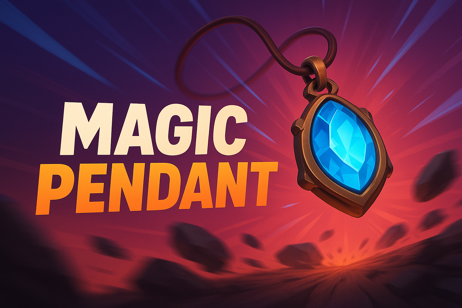 /Collection: /by davooda/Type: PNG/A captivating illustration of a magic pendant featuring a blue gem, set against a vibrant, dynamic background with rays emanating from the center. The title is bold and eye-catching.