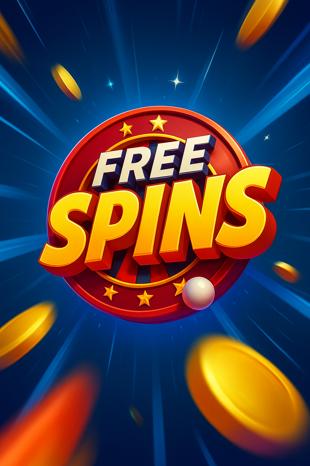A vibrant and dynamic illustration of a 'Free Spins' symbol, featuring bold typography and motion lines radiating from the center against a smooth gradient background.