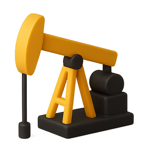 A stylized 3D representation of an oil pump jack in a minimalist design. The bright yellow and black color scheme adds a modern touch, suitable for educational or industry-related graphics.