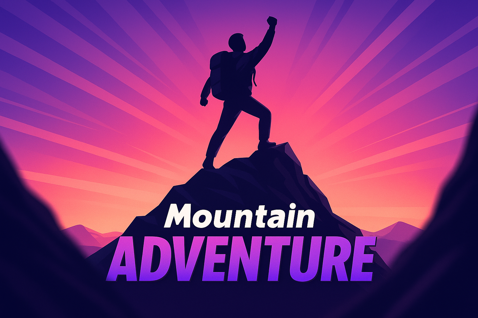 Epic Mountain Adventure at Sunset with Dynamic Elements