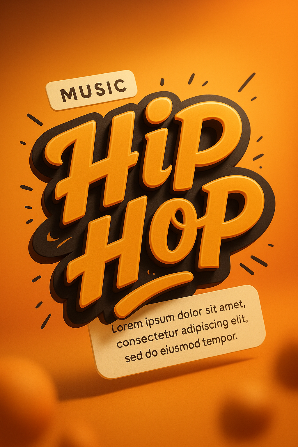 A bold and colorful graphic design featuring the words 'Hip Hop' prominently. The design uses playful typography and a warm color palette, making it suitable for music promotion.