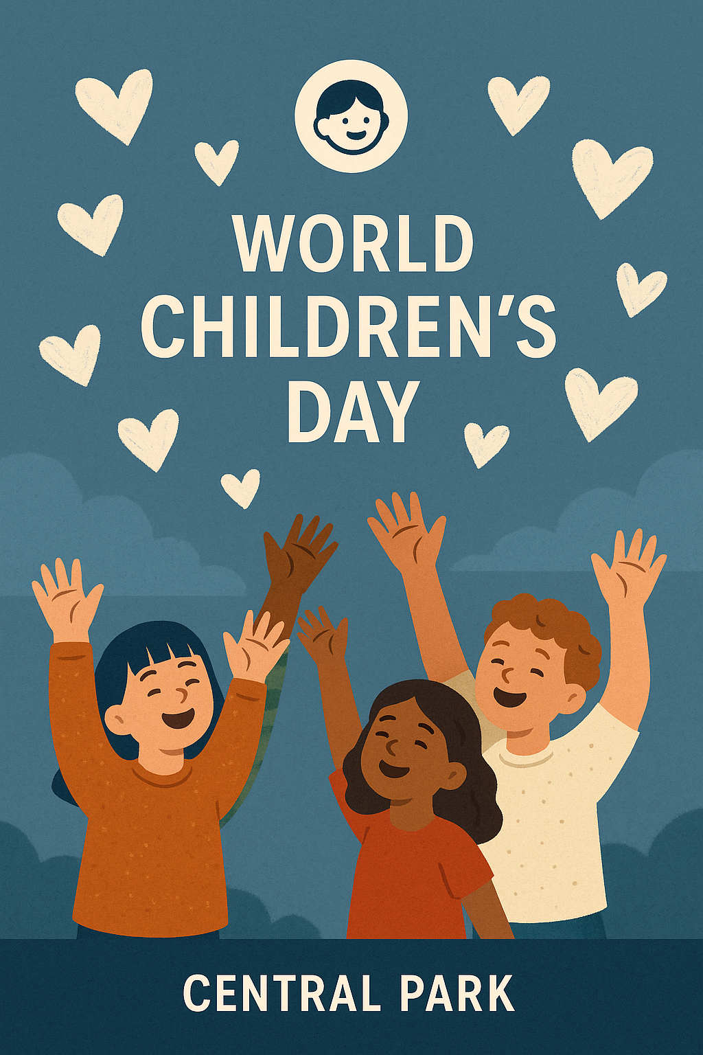 A vibrant illustration celebrating World Children's Day, featuring joyful children with raised hands against a colorful backdrop, perfect for community events and social media promotions.