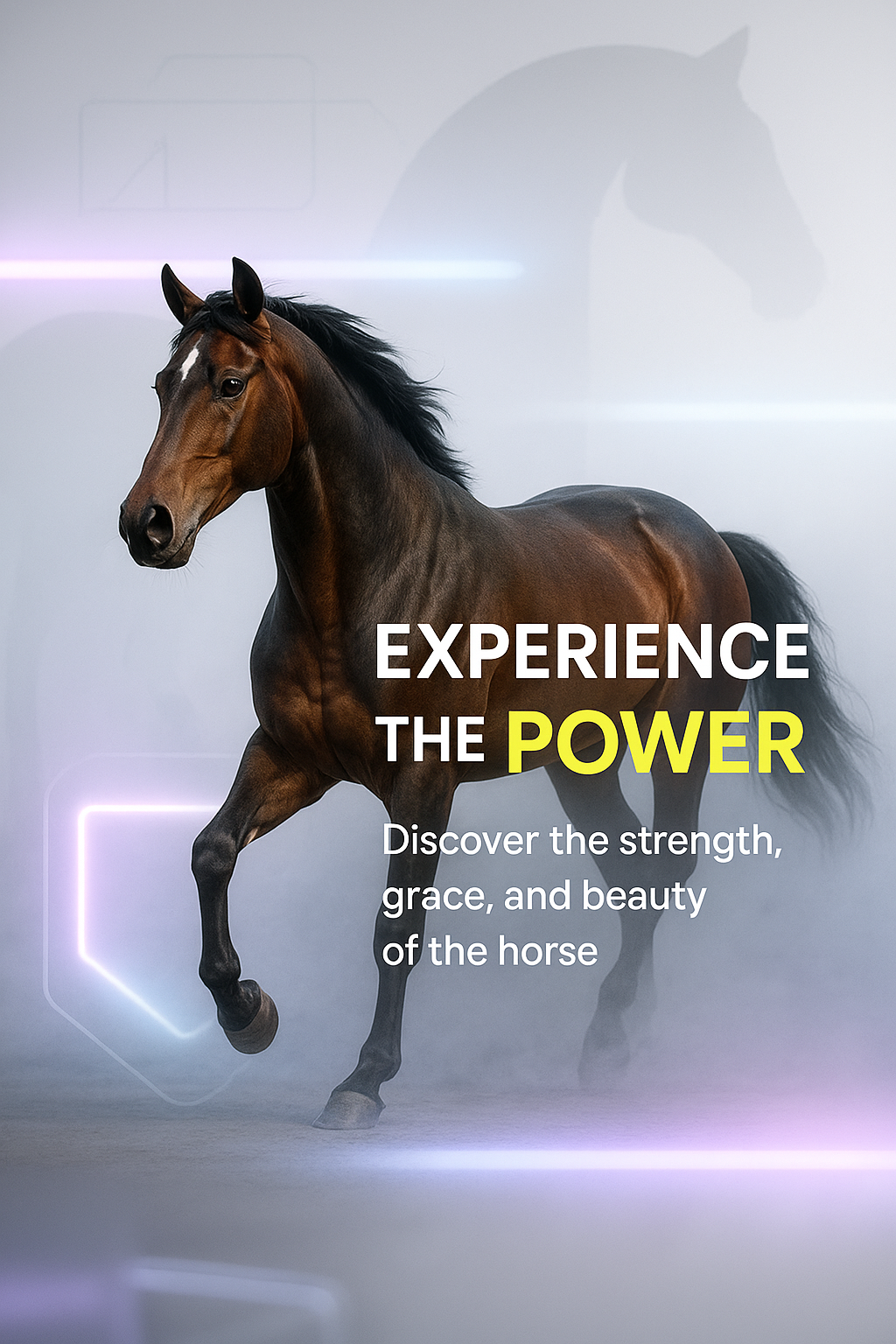 Vibrant image of a powerful horse in motion, enhanced with modern graphic elements. Ideal for promotional material or campaigns celebrating equestrian beauty and strength.