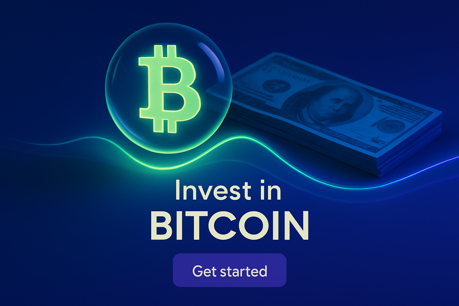 /Collection: /by davooda/Type: PNG/A captivating 3D illustration featuring a glowing Bitcoin symbol within a transparent sphere, accompanied by cash notes. Neon light accents create a dynamic atmosphere against a blue backdrop.