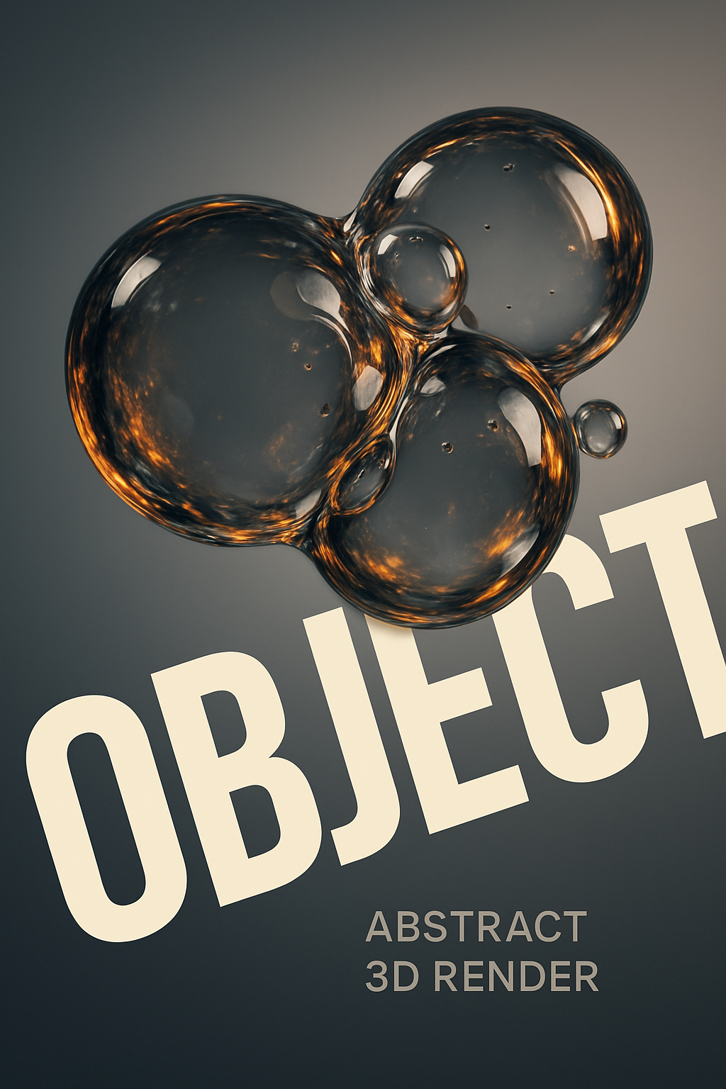 Dynamic Liquid Bubbles: Abstract 3D Render with Bold Typography