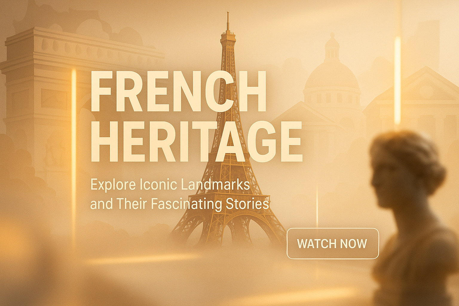/Collection: /by davooda/Type: PNG/A visually appealing promotional banner showcasing French heritage, featuring iconic landmarks and a soft color palette. Ideal for travel or cultural exploration campaigns.