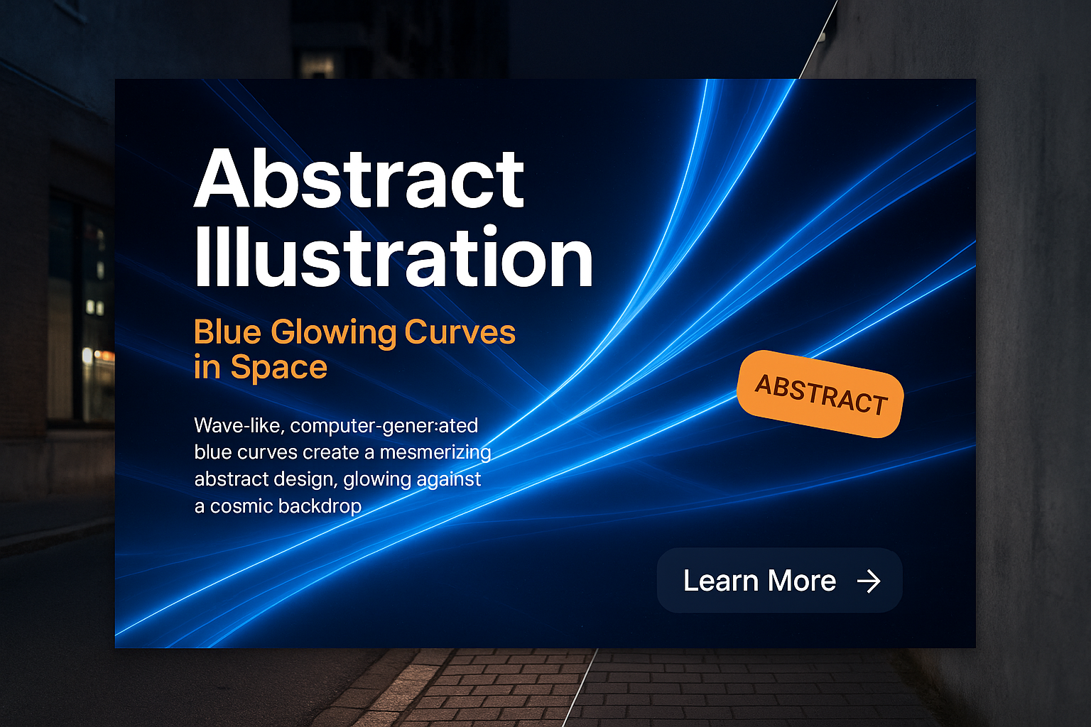 /Collection: /by davooda/Type: PNG/A visually striking abstract illustration featuring glowing blue curves set against a cosmic backdrop. The design includes layered elements, contrasting colors, and a clear hierarchy.