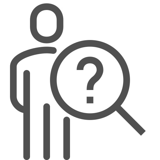 outline simple icon: curiosity, help, inquiry, magnifying glass, person