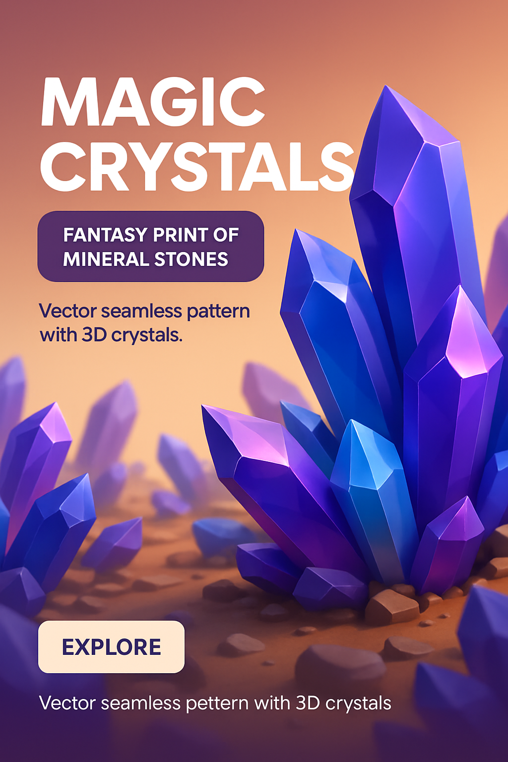 This vibrant image showcases a seamless pattern of 3D crystals, perfect for fantasy-themed designs. Ideal for digital art, wallpapers, and prints.