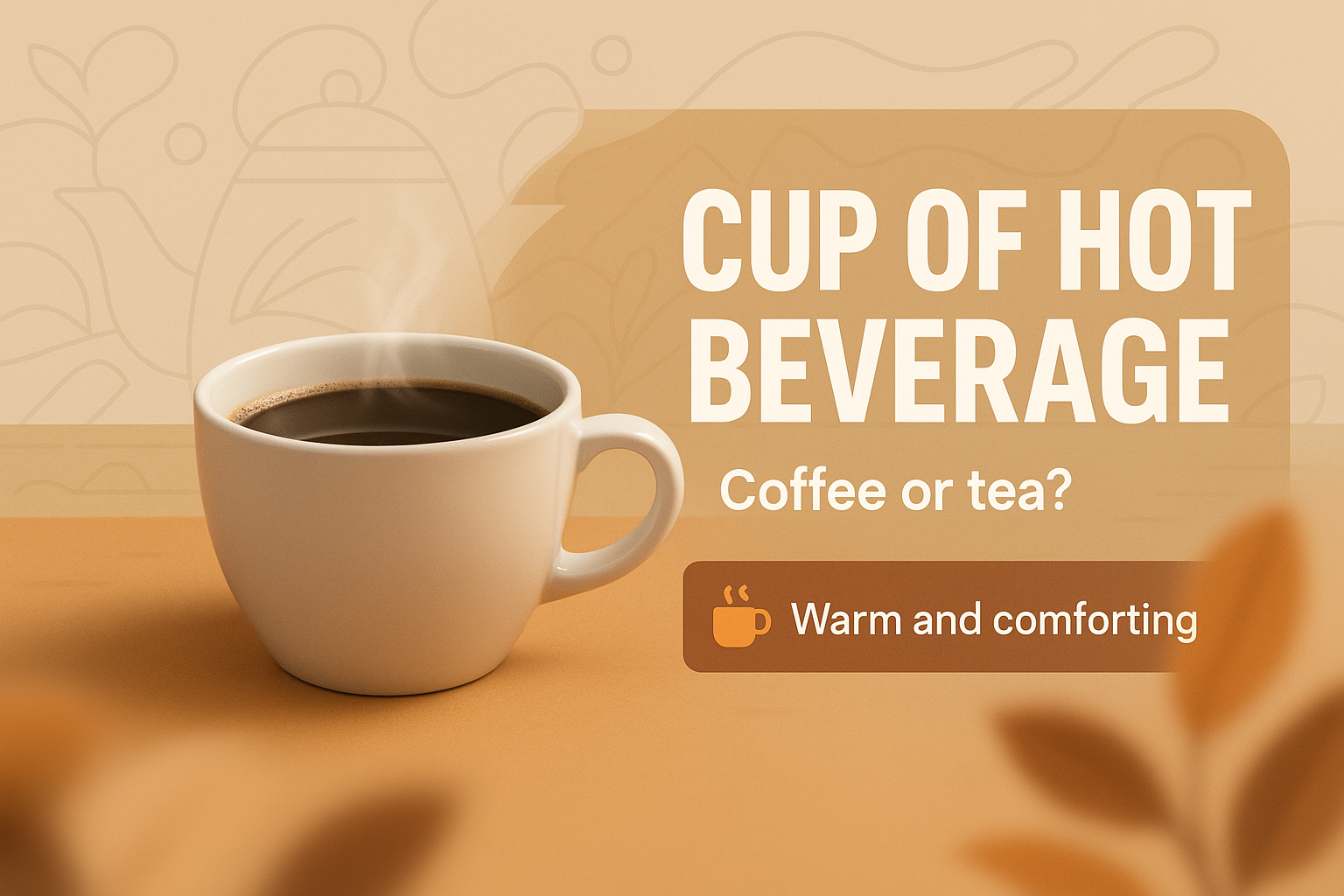 Warm Beverage Promotional Graphic Featuring Coffee and Tea