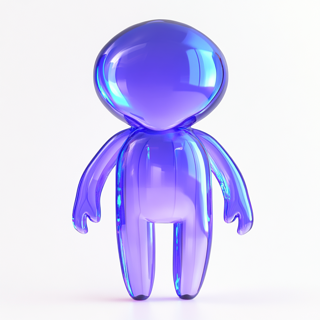 /Collection: /by davooda/Type: PNG/A stylized, glossy transparent purple character figurine, showcasing a modern and playful design. Ideal for use in digital art, collectibles, or branding visuals.