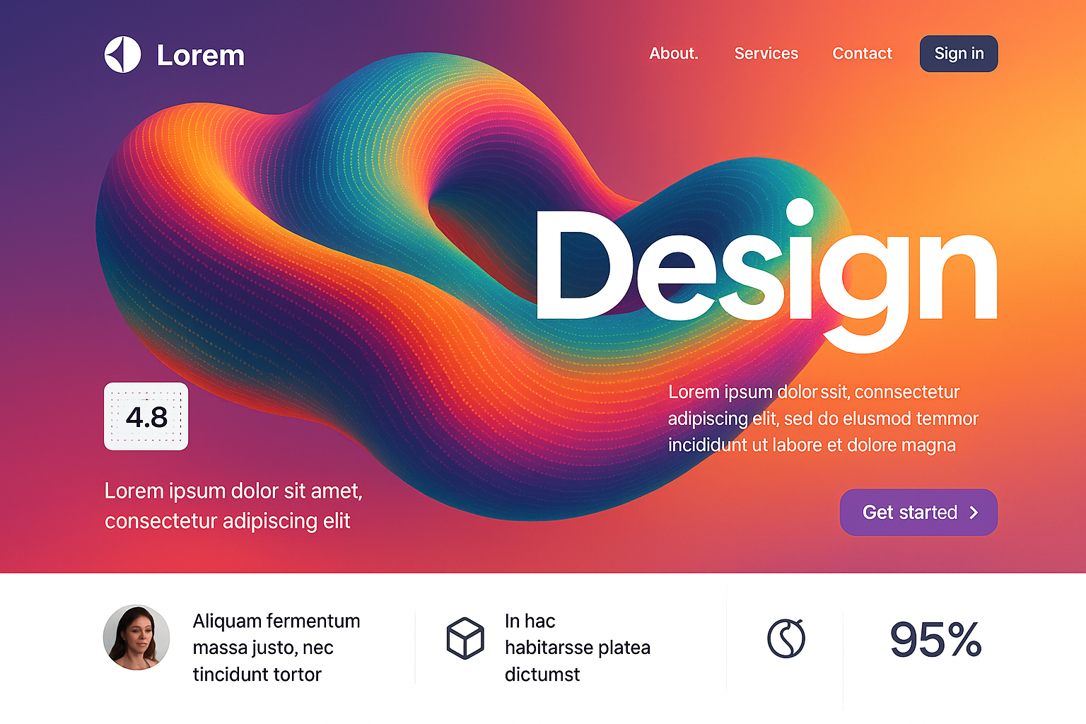 /Collection: /by davooda/Type: PNG/A colorful abstract geometric wave pattern serves as the background, featuring a bold headline and subtle text. The design is modern and dynamic, emphasizing realism and cinematic elements.