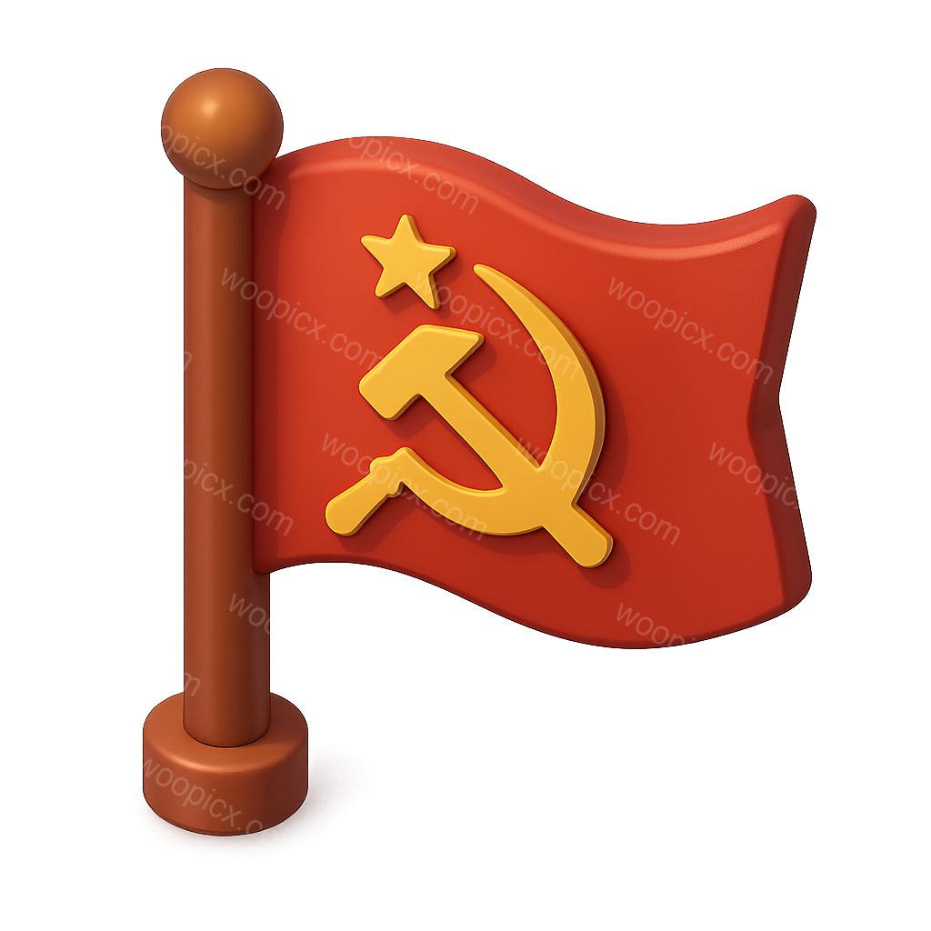 /Premium/Collection: /by davooda/Type: PNG/A 3D icon representing a workers flag, designed with a transparent background. It features a flag with a hammer and sickle symbol in a three-quarter view, emphasizing a volumetric and isometric style.