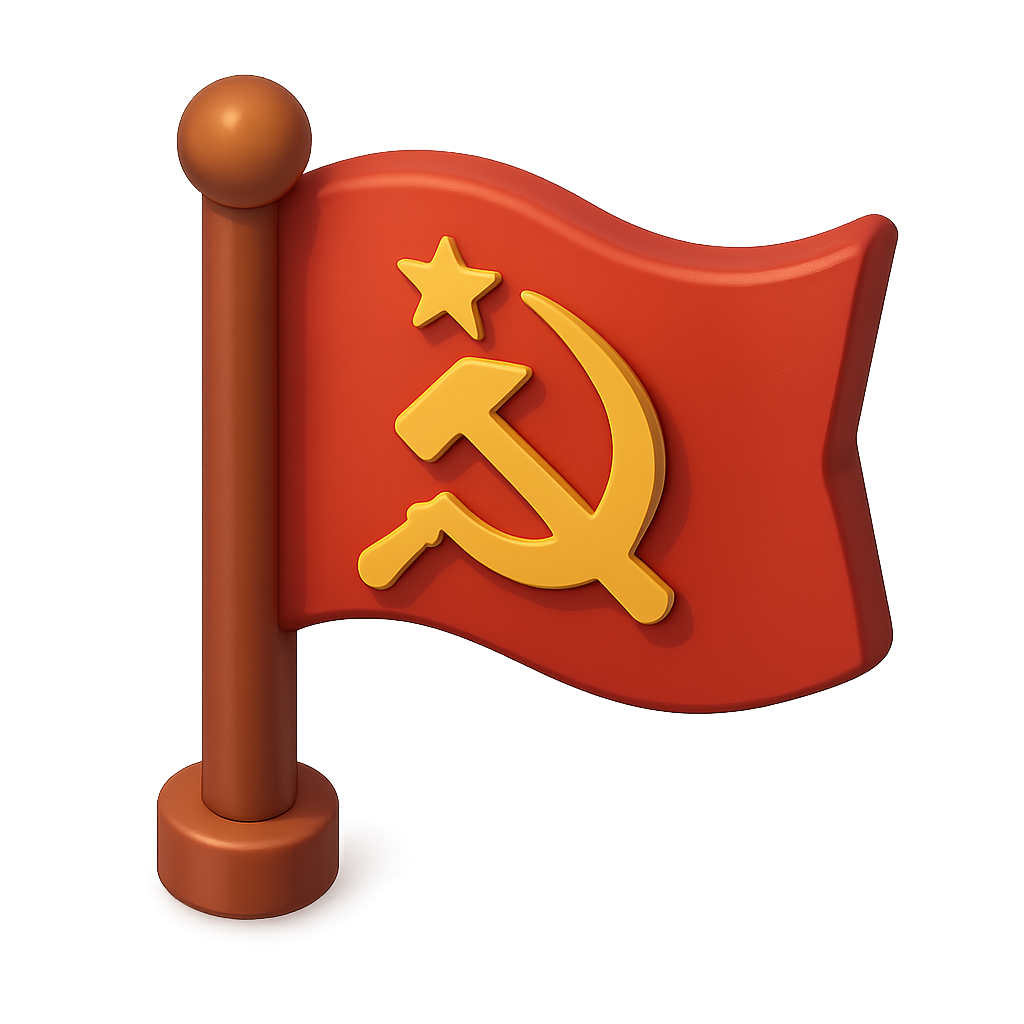 /Collection: /by davooda/Type: PNG/A 3D icon representing a workers flag, designed with a transparent background. It features a flag with a hammer and sickle symbol in a three-quarter view, emphasizing a volumetric and isometric style.