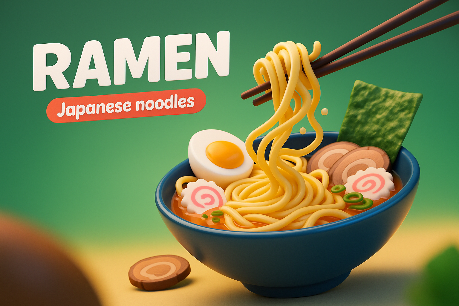 Dynamic 3D Illustration of Ramen with Vibrant Colors