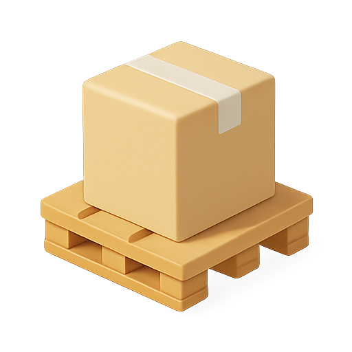 A 3D rendered graphic featuring a cardboard shipping box placed on a wooden pallet. Ideal for logistics and shipping industry visuals.