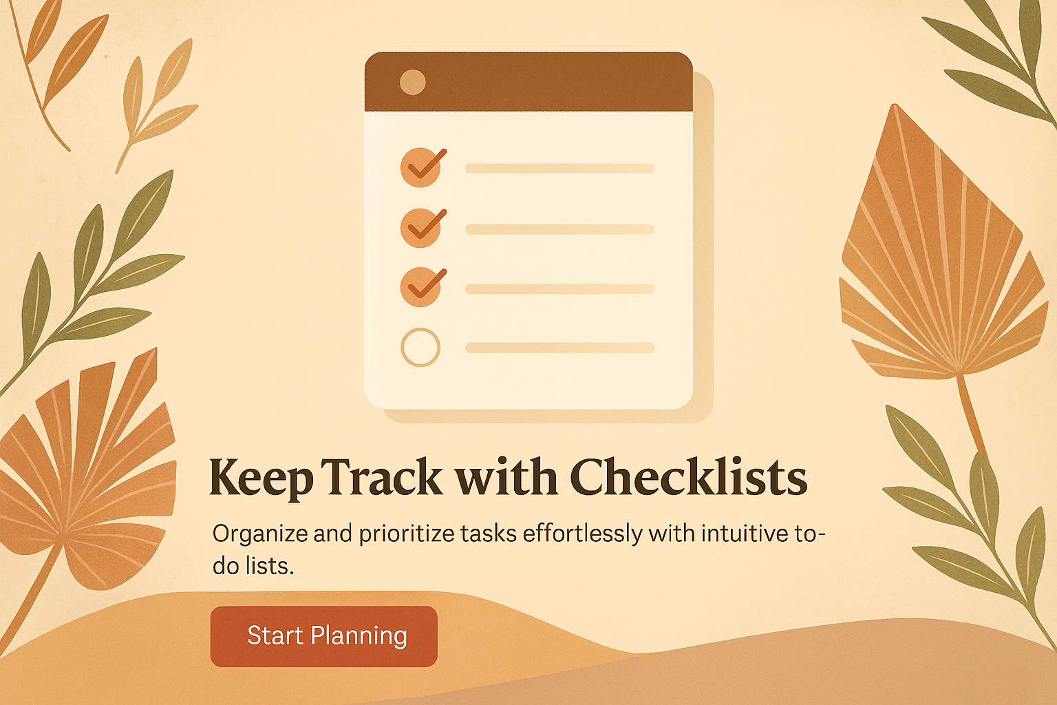 /Collection: /by davooda/Type: PNG/This image features a boho style checklist design, emphasizing task organization with a clean layout, warm colors, and engaging typography, inviting users to start planning.