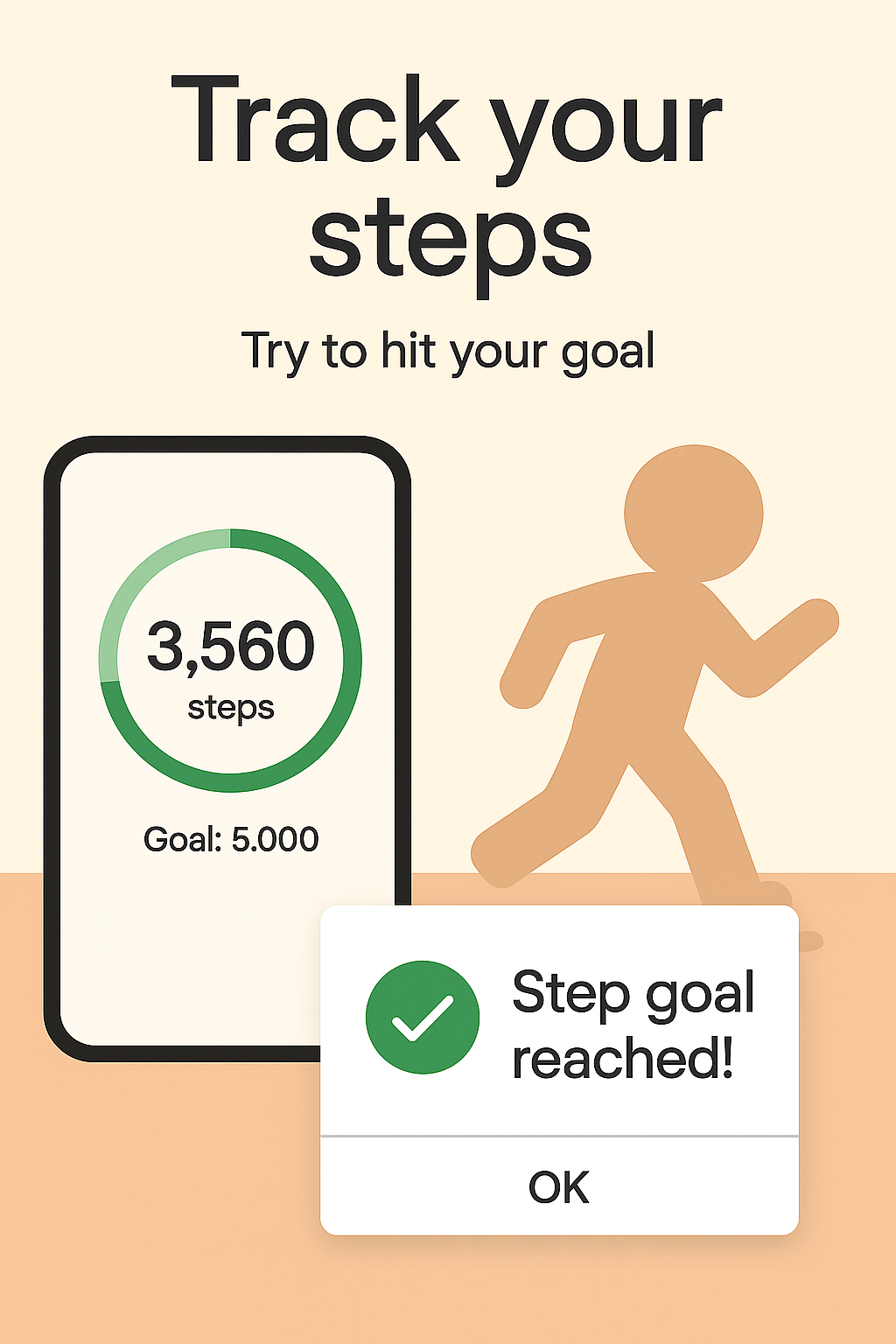 Illustrative mobile app interface showcasing step tracking progress with a visual representation of goal achievement, designed for fitness enthusiasts.