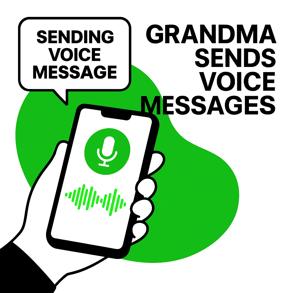 Colorful graphic depicting a hand holding a smartphone displaying a voice message interface, ideal for social media or digital communication themes.