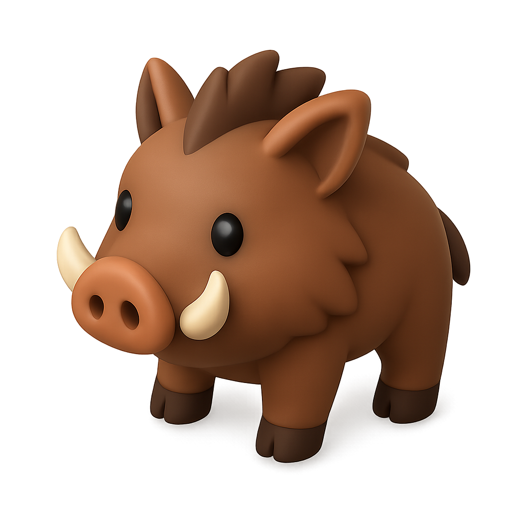A cute and stylized 3D boar icon featuring a rounded body, prominent tusks, and a friendly expression, set against a soft gradient background.