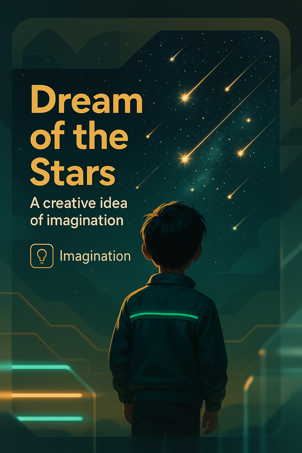 A captivating digital illustration depicting a child gazing at a star-filled sky, symbolizing imagination and creativity. Ideal for inspirational content.