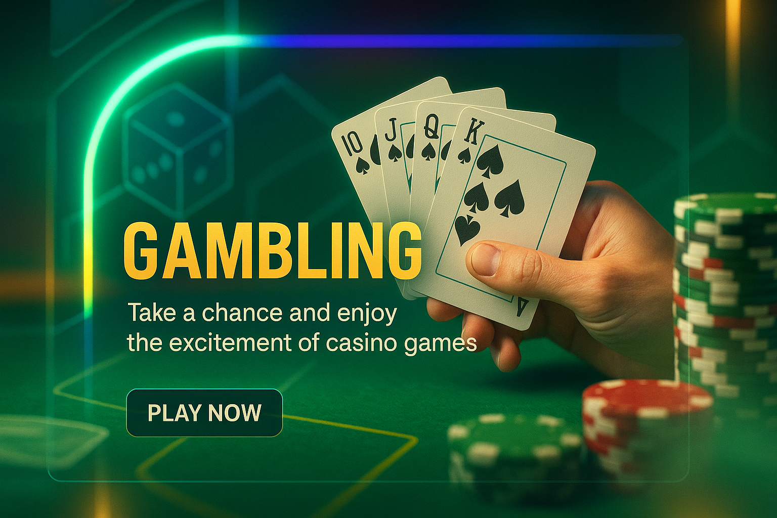 Casino Promotion Banner Featuring Gambling Theme and Game Elements